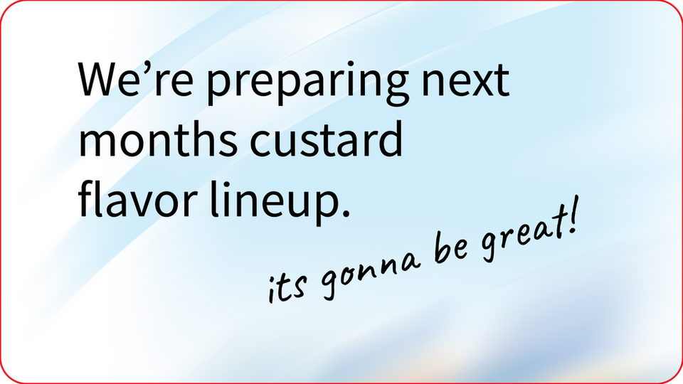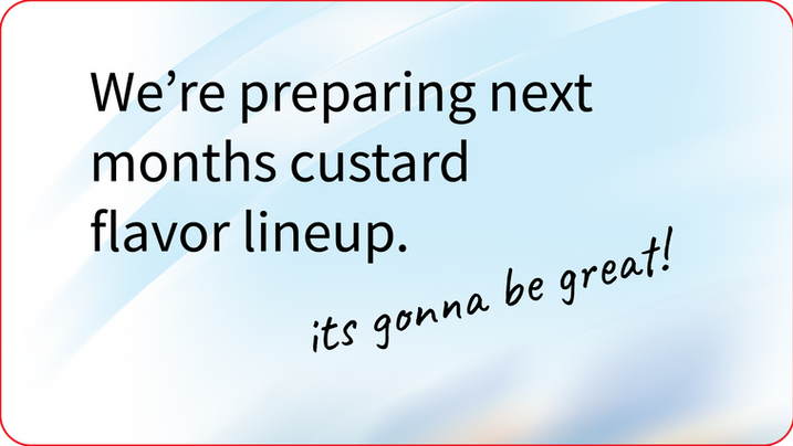 Made fresh and irresistibly smooth, our Frozen Custard flavors change monthly to keep things deliciously exciting. Check out this month’s lineup and treat yourself today!